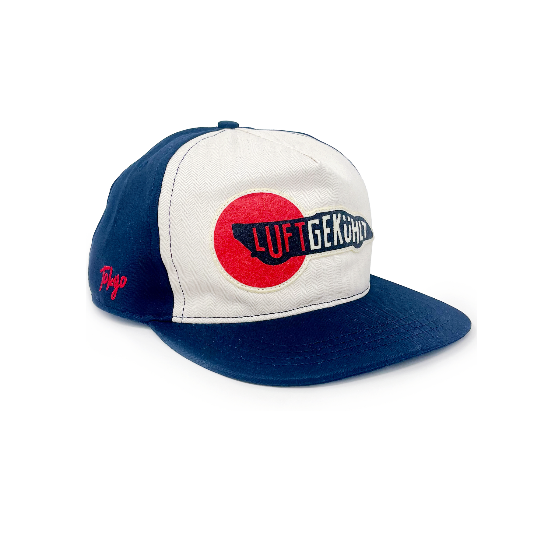 Made in with high quality 100% cotton herringbone twill with navy underbrim & front panel lining. Tokyo embroidered on the side with classic snapback enclosure.